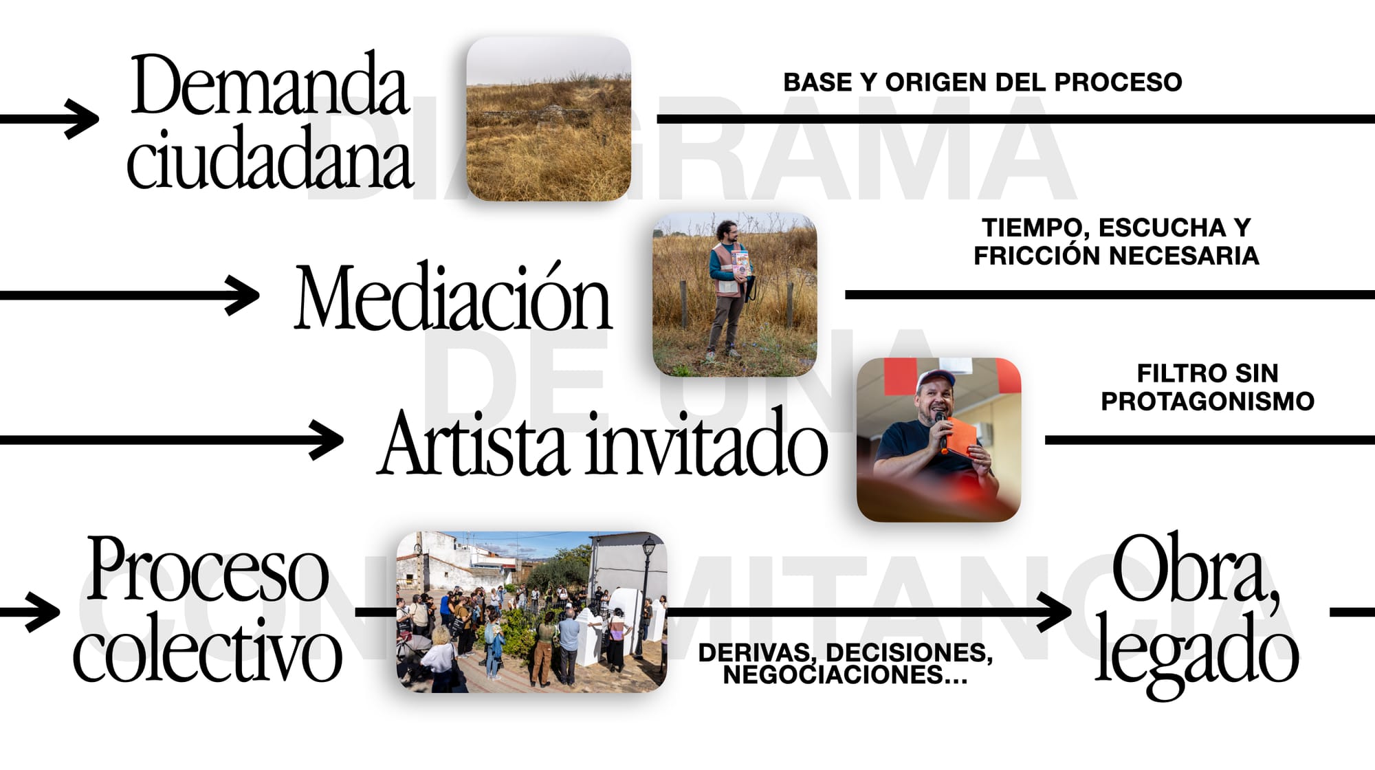 Concomitentes (que se inspira en la metodología, protocolo, movimiento Nouveaux Commanditaires del artista belga François Hers), en cambio, invierte el orden habitual: no parte del artista, ni del comisariado, ni de la necesidad de producir resultados medibles. Parte de una demanda ciudadana situada, de un grupo que identifica un problema y de una mediación sostenida que transforma esa demanda en un proceso artístico colectivo.