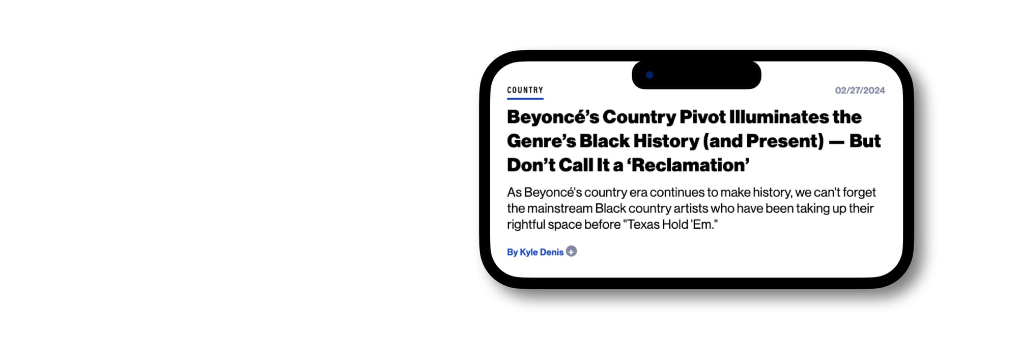 Bob Lefsetz empezaba su artículo sobre el movimiento creativo de Beyoncé refiriéndose a “¿En qué mundo disparatado Taylor Swift abandona el Country y Beyoncé se adentra en él?” Y yo añado: creer que con esta lección histórica para la audiencia global Beyoncé esté “reclamando” alguna cosa supone devaluar al máximo a los artistas afroamericanos que ya se han hecho un puesto en la escena por sí solos.