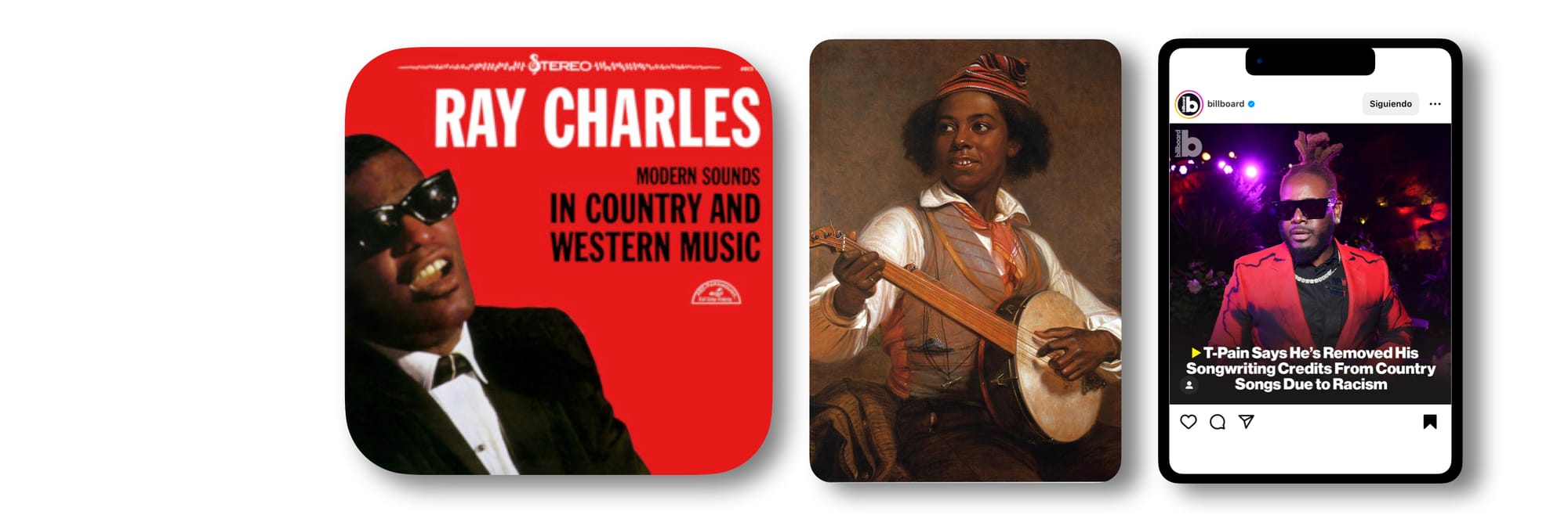 Alrededor de la mitad del Siglo XIX, era insólito ver a un blanco tocar el banjo. El elemento nuclear dentro del contexto del Country es un descendiente del akonting, un instrumento venido del África occidental y que se solía construir con calabazas.
